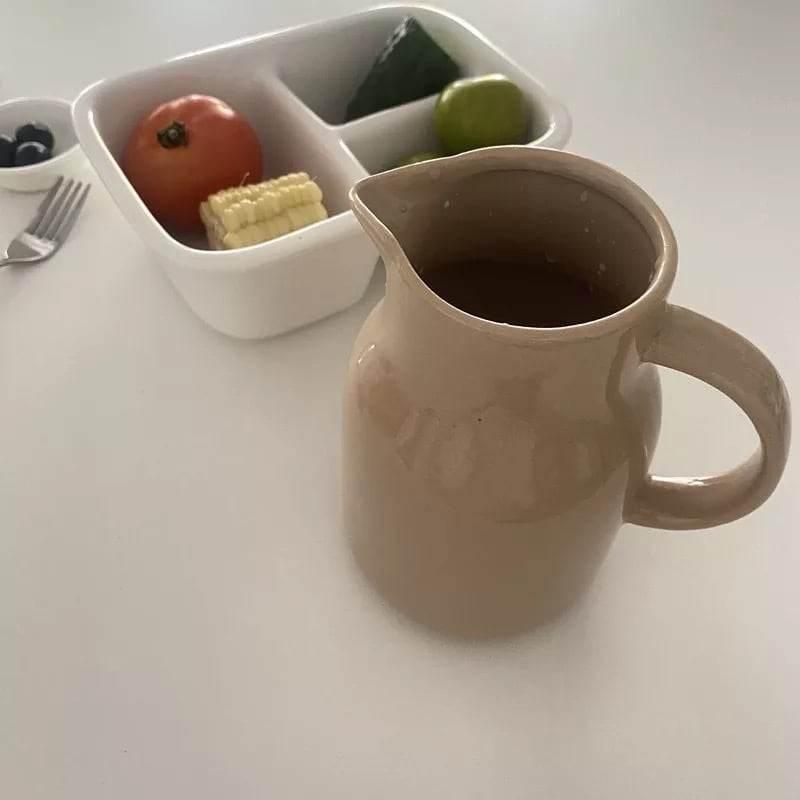 淡いラテカラーの持ち手付きジャグ。